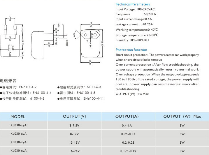 短路保護: 電源適配器在短路解除時能正常工作恢復(fù)