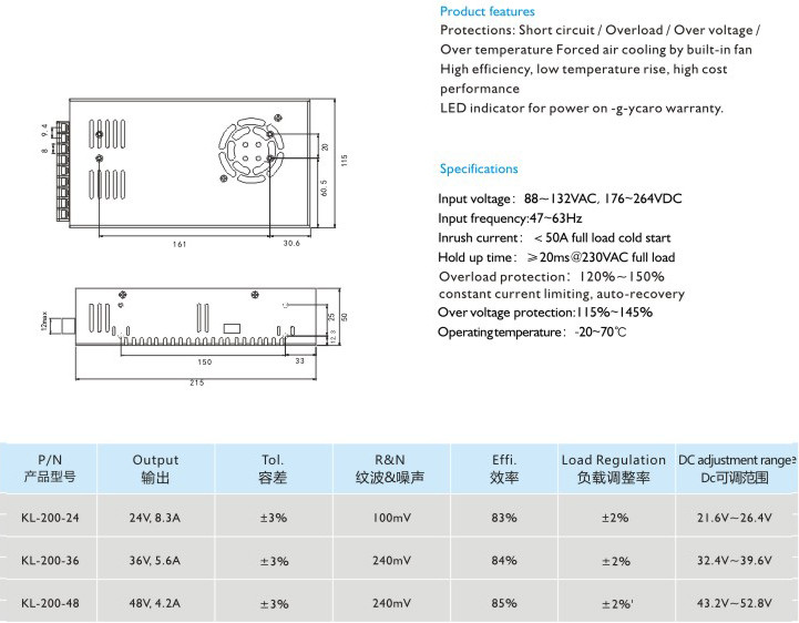 高效率、低溫升、高性價比 適用于LED顯示、工業(yè)控制 輸入電壓:88-132VAC,176-264VAC 輸入頻率:47~63Hz 沖擊電流:<50A滿載冷態(tài) 保持時間:≥20ms@230VAC滿載 過載保護:120%-150%自動恢復限;限流保護,自動恢復 過壓保護:115%~145% 運行溫度:-20-70℃" />